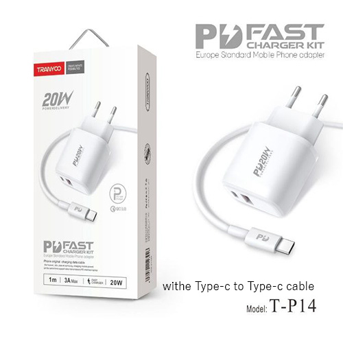 شارژر 20 وات دو پورت ترانیو مدل TRANYOO T-P14 همراه با کابل Type-C