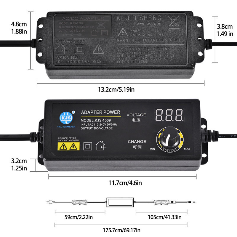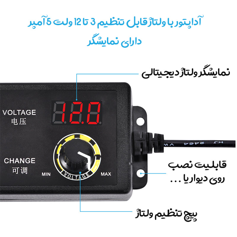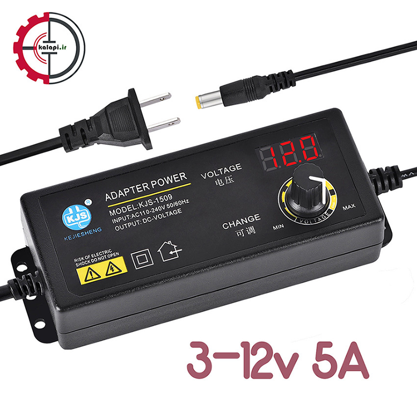 • آداپتور متغیر با ولتاژ قابل تنظیم 3 تا 12 ولت 5 آمپر دارای نمایشگر - پاور 60 وات
